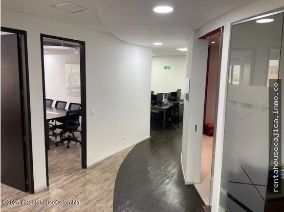 Oficina de 170 m2 con recepción, oficina principal con baño y cuarto de seguridad de caja fuerte, 18 puestos de trabajo, sala de juntas, sala de espera, fotocopiadora, rack, sala de conductores, cocina y bodega. 4 parqueaderos (2 parqueaderos dobles en duplicadores de espacio). Vias de acceso y transporte a 1 cuadra, zona de restaurantes, bancos y centro comerciales cerca - 25-1719